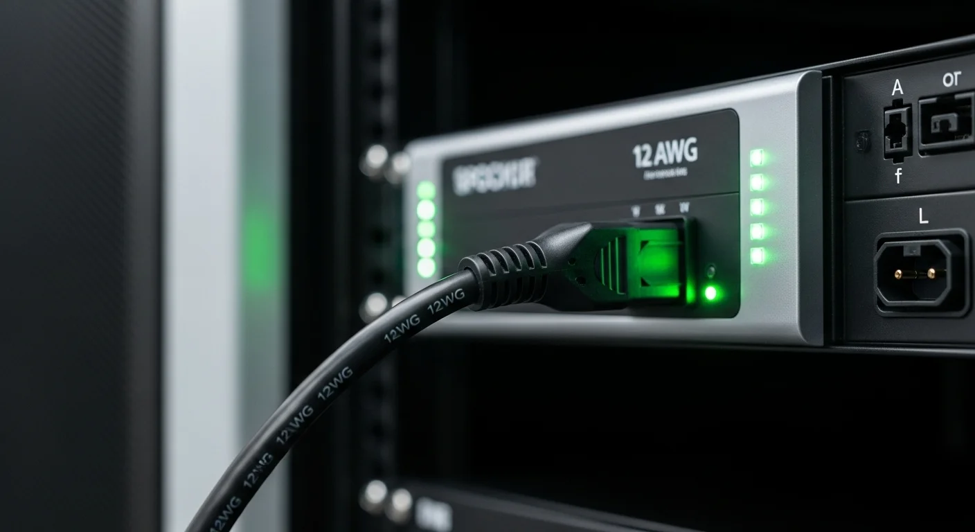 Para la mayoría de los racks, los circuitos de 20A son el estándar mínimo, y estos requieren cable 12 AWG. Esos 3.31 mm² de cobre (la conversión de 12 AWG a mm2) son la garantía de que el circuito puede manejar la carga continua de múltiples servidores 24/7 sin sobrecalentarse y comprometer el uptime. La fiabilidad aquí se mide en 'nueves' (99.999%). Un fallo eléctrico puede costar a una empresa millones. Por eso, en este entorno, el amperaje del 12 AWG (20A) no es una recomendación, es una ley. Además, los grandes Sistemas de Alimentación Ininterrumpida (UPS) que protegen estos racks necesitan circuitos robustos para recargar sus baterías mientras alimentan la carga, una tarea que nuevamente recae sobre circuitos de 20A o más.