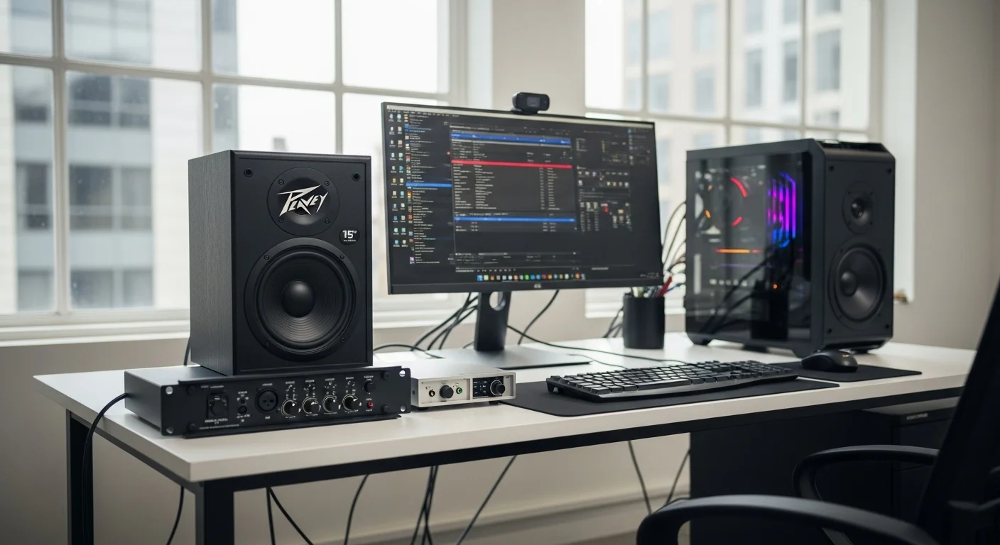 - Arquitectura Típica: PC/Mac con tu DAW (Ableton, FL Studio, Reaper) → Interfaz de audio USB/Thunderbolt → Un par de altavoces Peavey. Para un control más granular, puedes insertar una pequeña mezcladora.