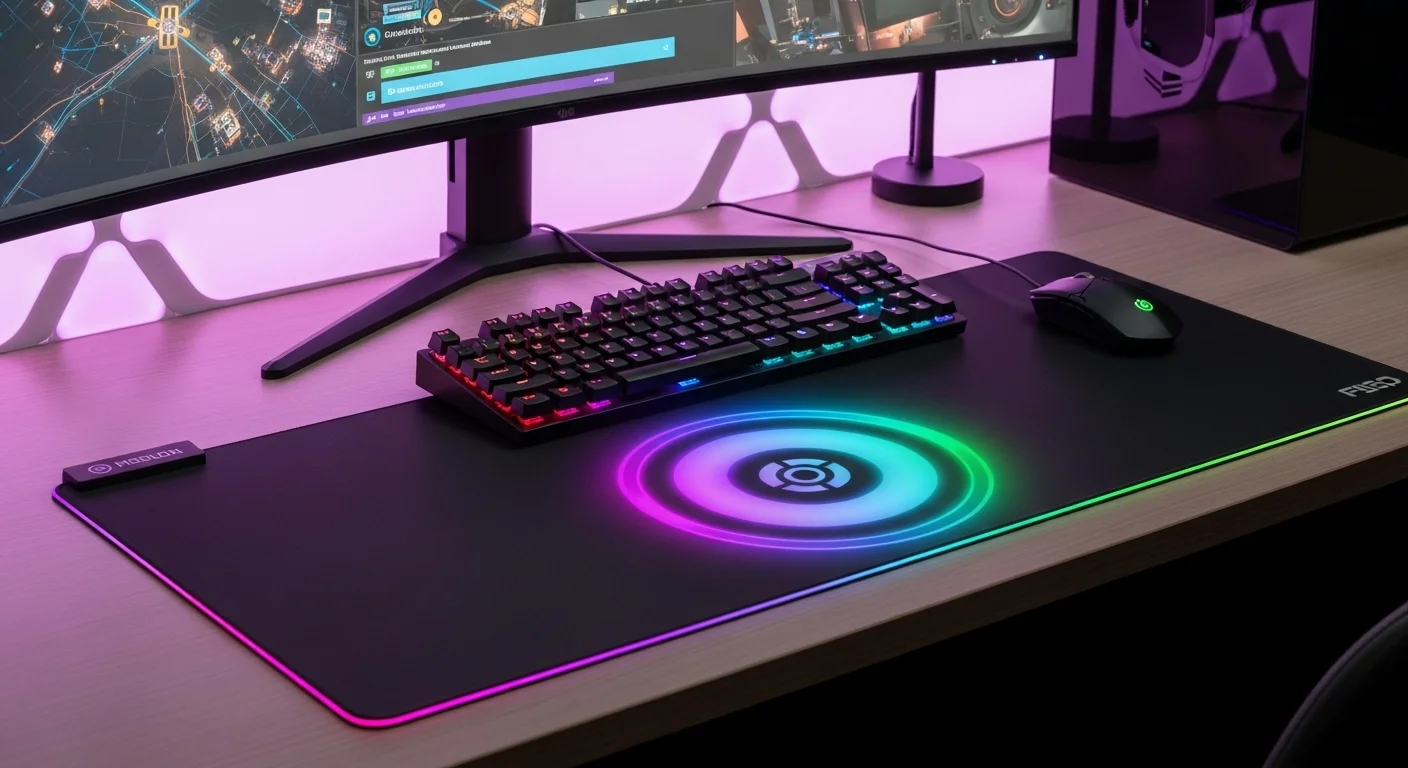 Este concepto de integración se está trasladando al propio escritorio. El pad escritorio está dejando de ser una superficie pasiva. La carga inalámbrica Qi ya es una realidad en muchos modelos, permitiéndote cargar tu teléfono sin más cables. Pero lo que viene es aún más interesante: pads con hubs USB-C integrados para conectar periféricos, o incluso superficies calefactadas. El pad gamer lidera esta carga con la sincronización de iluminación RGB. Más allá de la estética, esto tiene un potencial funcional enorme. Imagina que todo tu escritorio parpadea en rojo cuando una compilación falla o en verde cuando el deploy ha sido exitoso. Es una forma de notificación ambiental que te mantiene informado sin interrumpir tu flujo de trabajo. El escritorio inalámbrico inteligente se convierte en una extensión de tu UI.