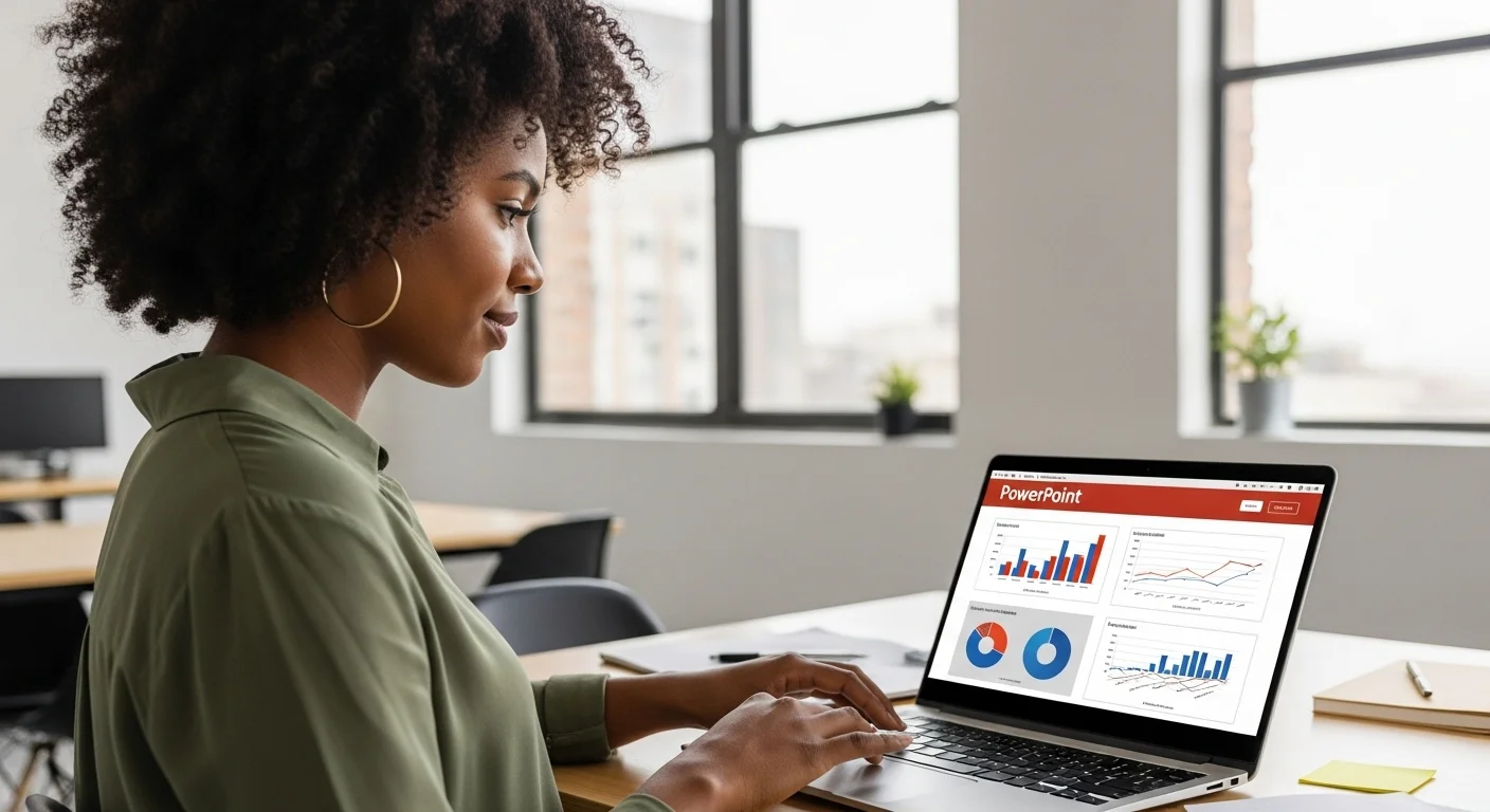 Si eres nuevo en esto, la curva de aprendizaje es suave. Al abrir la aplicación, te encuentras con un dashboard que te permite empezar desde cero o usar una plantilla. Mi consejo: ignora las plantillas más llamativas y empieza con una simple y limpia. En nuestro campo, la claridad supera a los fuegos artificiales. La interfaz de cinta (ribbon) es bastante lógica. En 'Insertar' tienes todo para añadir diagramas, tablas, fragmentos de código (como imagen, ¡no texto plano!), videos y audio. Asegúrate de que tus recursos multimedia sean de alta calidad; una imagen pixelada o un video de baja resolución resta credibilidad al instante. Y un detalle técnico importante: configura el formato de la diapositiva a 16:9 desde el principio. Es el estándar de facto para la mayoría de proyectores y monitores de computadora modernos, y te evitará dolores de cabeza más adelante. La Vista del Moderador es tu mejor aliado durante la exposición. Te permite ver tus notas y la siguiente diapositiva en tu laptop mientras la audiencia solo ve la presentación principal. Para moverte con libertad, un puntero inalámbrico de Logitech o Targus es una inversión mínima con un retorno enorme en profesionalismo. Entender la importancia de cables y conectores también es clave para evitar problemas. Libera tus manos del teclado y te permite conectar con tu audiencia, no con tu máquina.