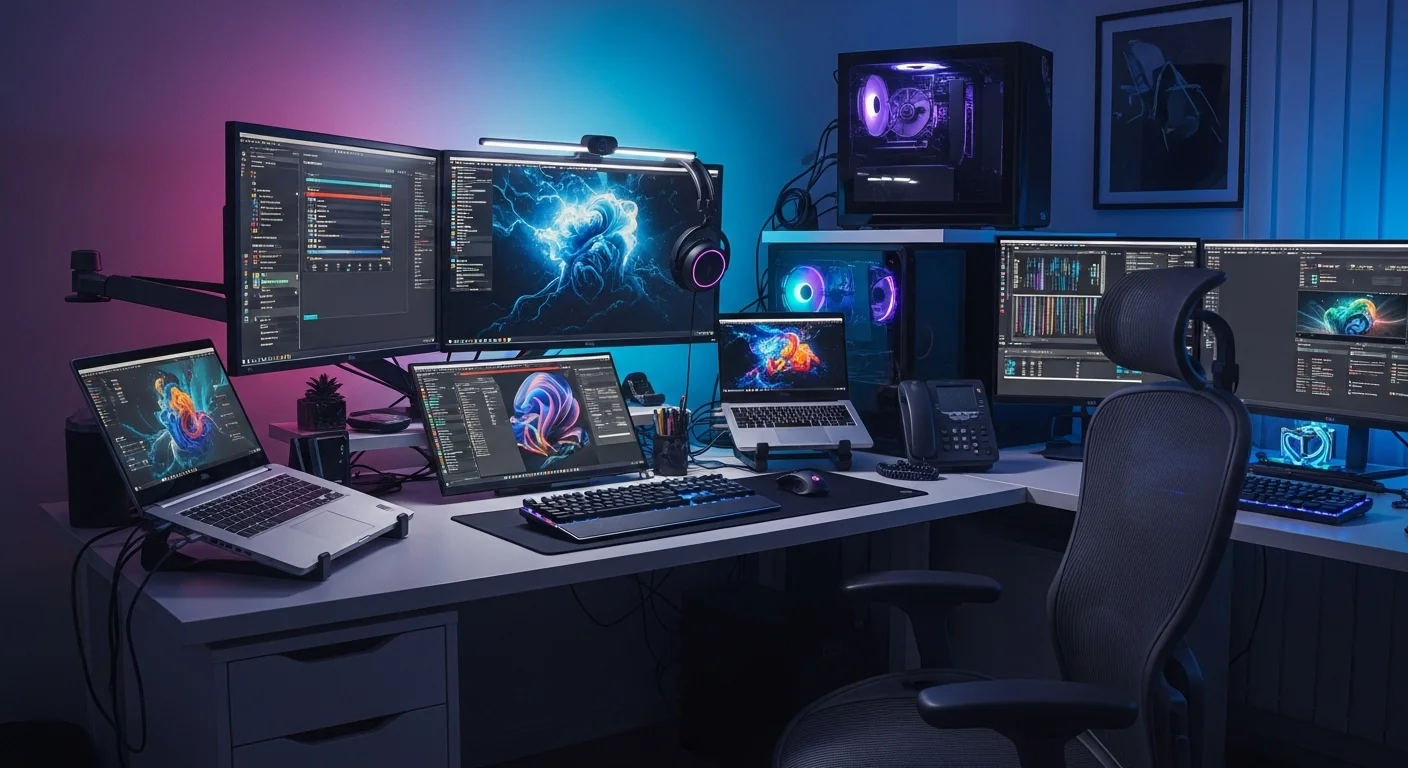 Los periféricos son la interfaz directa con el usuario y su impacto en la productividad es enorme. Un monitor es mucho más que una pantalla: la resolución (Full HD, QHD, 4K), el tipo de panel (IPS para color, TN para velocidad, VA para contraste), la tasa de refresco (Hz) y la cobertura de espacios de color (sRGB, Adobe RGB) son factores determinantes. Para potenciar al máximo la productividad, es esencial conocer la guía definitiva de accesorios que complementan los equipos. Un diseñador gráfico necesita un monitor con calibración de color perfecta, mientras que un programador como yo se beneficia enormemente de un monitor ultrapanorámico para visualizar más código. Marcas como Dell (UltraSharp), BenQ y LG lideran diferentes nichos.